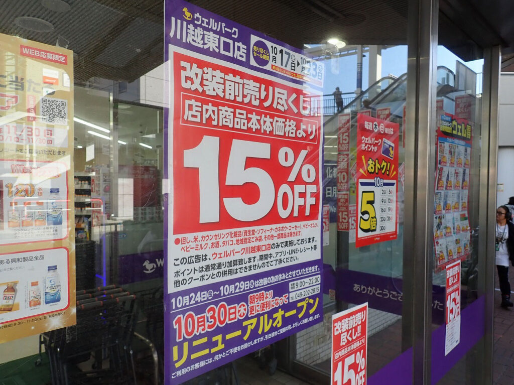 今回のリニューアルオープンのために、『いなげや 川越南大塚駅前店』は2週間ほど休業していました。